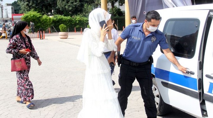 Bunun üzerine polis ekipleri nikah salonuna bask?n düzenledi. Polis genç kad?n? salondan d??ar? ç?kart?p dinledi.