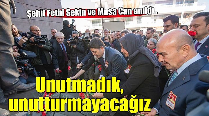 ?zmirliler, 5 Ocak 2017’de ?zmir Adliyesi önünde teröristlerle çat??maya girerek olas? bir katliam? önleyen ve onlar? durdurmak için gözünü k?rpmadan ?ehit dü?en kahraman polis memuru Fethi Sekin’i ve ayn? sald?r?da ?ehit olan müba?ir Musa Can’? unutmad?. ?zmir Adliyesi’nde anma töreni düzenlendi. ?zmir Büyük?ehir Belediyesi anma program? kapsam?nda ?ehit polis memuru Fethi Sekin ile müba?ir Musa Can için Adliye bahçesinde ve Konak’ta 4 bin ki?ilik lokma da??tt?. Ayr?ca Bayrakl?'daki Fatih Camii’nin avlusunda, cuma namaz?n?n ard?ndan 750 ki?ilik tavuk-pilav-ayran ile çay-kahve ikram? da yap?ld?.