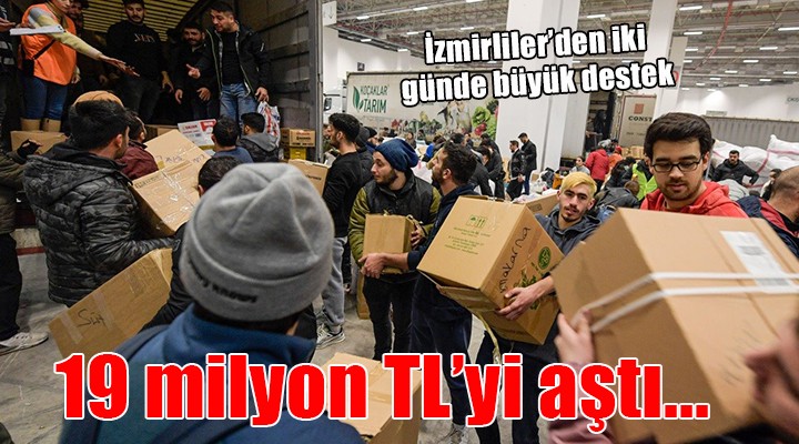 ?zmir Büyük?ehir Belediyesi’nin merkez üssü Kahramanmara? olan deprem sonras?nda ba?latt??? destek çal??malar? artarak büyüyor. Son 48 saatte 46 t?r, 15 kamyon, 3 uçak, 1 gemi insani yard?m malzemesini afet bölgesine sevk eden Büyük?ehir Belediyesi, yurtta?lar?n deste?iyle Umut Hareketi’ni de büyütüyor. ?ki günde toplam ba??? rakam? 19 milyon 70 bin 590 liray? buldu. ?u ana kadar kampanyayla 81 bin 395 yemek paketi, 6 bin 272 g?da paketi, 6 binin üzerinde temizlik paketi, 31 bin 247 battaniye, 5 bin 561 uyku tulumu, 3 bin 920 hijyen paketi, 3 bin 505 bot, 3 bin 629 mont, 11 çad?r ba???? al?nd?.