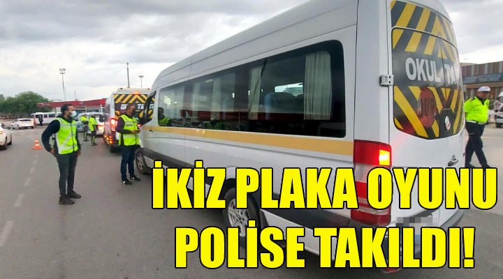 ?zmir Emniyet Müdürlü?ü Trafik Denetleme ?ube Müdürlü?ü, kent genelinde 'S' plakal? servis minibüslerini denetlemek amac?yla özel ekip kurdu. Binlerce servis arac?n? tek tek takibe alan ekip, yap?lan inceleme sonucu baz? servis araçlar?n?n ‘ikiz plaka’l? oldu?u yönünde bilgiler elde etti. Firma sahiplerinin ald??? ‘S’ plakay? ayn? renk ve modelde ba?ka araca tak?p korsan servisçilik yapt??? belirlendi. Kontroller s?ras?nda, 'S' plaka sahibi A.E.'nin 'ikiz plaka' oyunu aç??a ç?kar?ld?. ?üphelinin ayn? 'S' plakay? ayn? renk ve modelde birden fazla araca tak?p, korsan servisçilik yapt??? tespit edildi. A.E.'ye idari para cezas? kesilirken, arac? da trafikten menedildi.