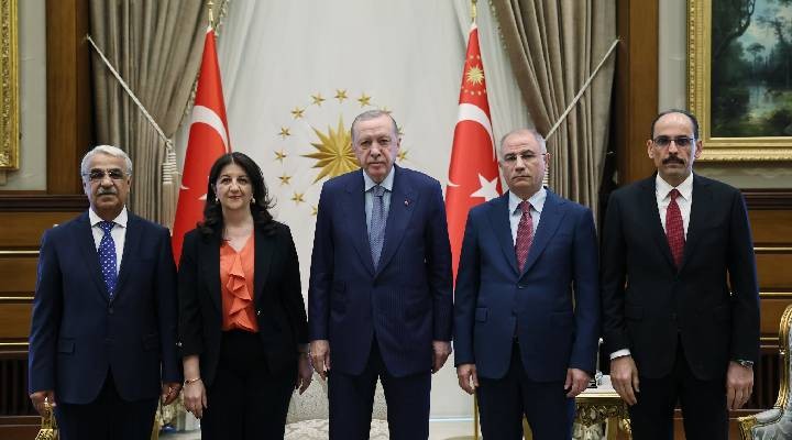 DEM Parti'nin ?mral? heyetinde Pervin Buldan ve Mithat Sancar yer al?rken Be?tepe'deki görü?meye M?T Ba?kan? ?brahim Kal?n ve AKP'li Efkan Ala da kat?ld?