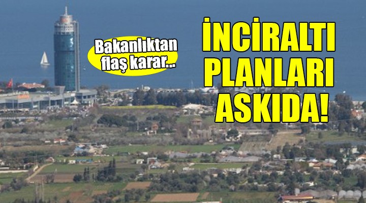 SONKALE?ZM?R-Çevre, ?ehircilik ve ?klim De?i?ikli?i Bakanl???, ?nciralt? ile ilgili fla? bir karar ald?. Bakanl?k, kentte bölgeyi yap?la?maya açaca?? gerekçesiyle itiraz edilen ?nciralt? Planlar?'n? ask?ya ç?kard?.