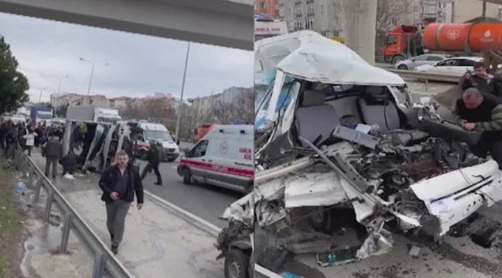 D-100 kara yolu Silivri mevkisinde sürücüsünün direksiyon hakimiyetini kaybetti?i servis minibüsü, 5 araca çarpt?ktan sonra yan yatt?.