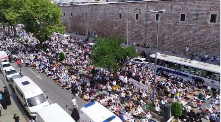 Cenaze töreni nedeniyle cami ve çevresinde yo?un güvenlik önlemi al?nd?. Fatih Camisi’ne ç?kan yollar da trafi?e kapat?ld?. Cenaze için gelenlerin yollarda seccade serip saf tuttu?u görüldü.
