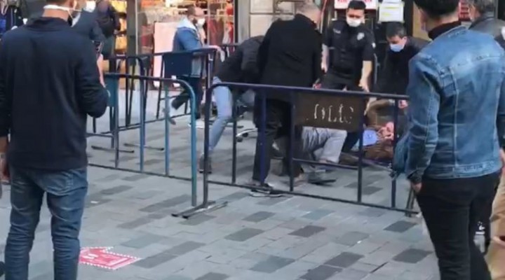 ?stiklal Caddesi'nde tekme tokat 'sosyal mesafe' kavgas?