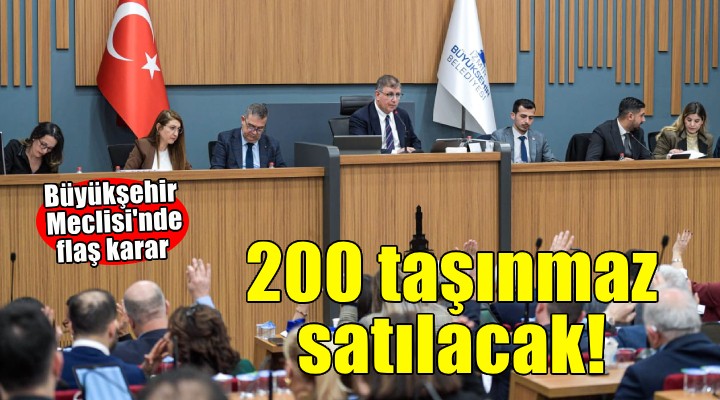 SONKALE?ZM?R-?zmir Büyük?ehir Belediyesi'nin ?ubat ay? meclis toplant?s?n?n ikinci oturumu Ba?kan Cemil Tugay yönetiminde Kültürpark 4 No'lu Hol'de yap?ld?, Mecliste; mülkiyeti Büyük?ehir'e ait 200 ta??nmaz?n sat??? için önerge verildi. Komisyonlara gönderilen önergenin onaylanmas? sonras? sat?? karar? kesinle?ecek.