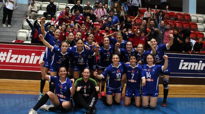 ?zmir Büyük?ehir Belediyesi Gençlik ve Spor Kulübü Hentbol Kad?n Tak?m?, Avrupa Hentbol Federasyonu Avrupa Kupas? (EHF Cup) ikinci tur rövan? maç?nda Yunanistan ekibi A.E.S.H. Pylea’y? 28-19’luk skorla ma?lup etti. Celal Atik Spor Salonu’ndaki ilk maç? 28-27 kaybeden ?zmir ekibi, rövan? kar??la?mas?ndaki farkl? galibiyetle turu atlamay? ba?ard?. Mavi-beyazl?lar, Yunanistan temsilcisi önünde ilk yar?y? da 18-12 önde geçti. ?zmir Büyük?ehir'in üçüncü turdaki rakibi, 27 Ekim’de çekilecek kurada belli olacak.