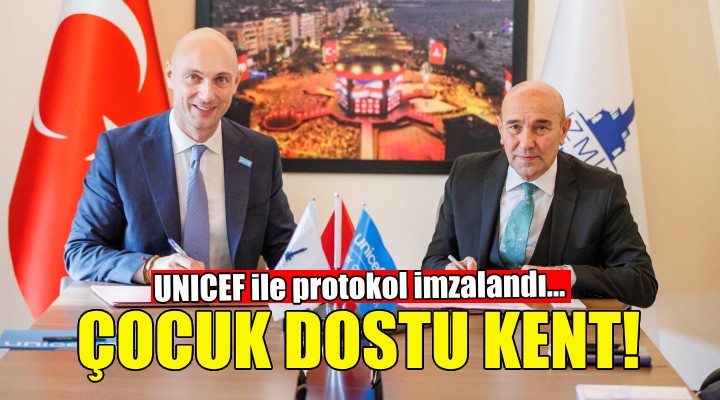 ?zmir Büyük?ehir Belediye Ba?kan? Tunç Soyer’in çocuk dostu kent hedefi do?rultusunda çal??an, çocuklar?n aktif yurtta?l?k temeliyle yerel yönetimde daha fazla söz sahibi olabilmeleri için Çocuk Belediyesi’ni hayata geçiren ?zmir Büyük?ehir Belediyesi, Birle?mi? Milletler Çocuklara Yard?m Fonu (UNICEF) ile protokol imzalad?. Toplumsal cinsiyet e?itli?ini destekleyecek, çocuklara, gençlere ve dezavantajl? topluluklara e?it ya?am hakk? sa?layacak çal??malar? içeren protokolün imza törenine ?zmir Büyük?ehir Belediye Ba?kan? Tunç Soyer, UNICEF Türkiye Temsilcisi Paolo Marchi, UNICEF Türkiye Program Uzman? Gökçen Y?lmaz Tokgöz, UNICEF Türkiye Sosyal Politika Sorumlusu Görkem Güner, ?zmir Büyük?ehir Belediyesi Genel Sekreter Yard?mc?s? Ertu?rul Tugay, ?zmir Büyük?ehir Belediyesi Sosyal Projeler Dairesi Ba?kan? An?l Kaçar, ?zmir Büyük?ehir Belediyesi Çocuk Belediyesi ?ube Müdürü U?ur Özya?ar kat?ld?.