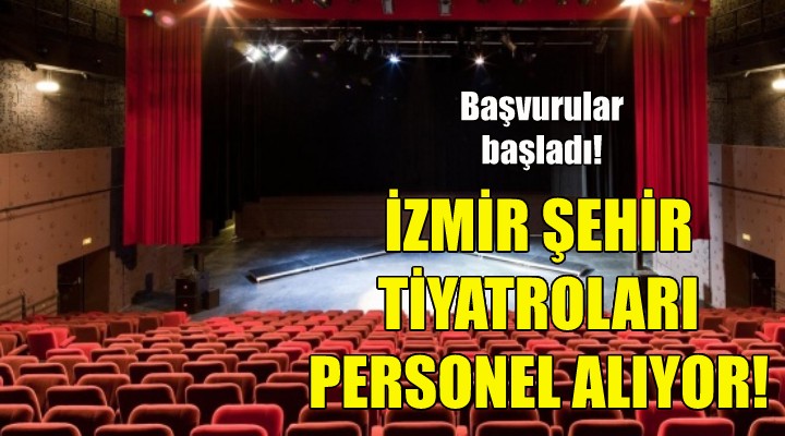 ?zmir Büyük?ehir Belediyesi ?ehir Tiyatrolar? 16 kadrolu oyuncu, 20 stajyer oyuncu, bir sahne tasar?mc?s?, bir giysi tasar?mc?s?, bir ???k tasar?mc?s?, bir ba? ???k uzman?, bir ba? realizatör, bir teknik müdür, 2 sahne amiri, 4 sahne ???kç?s?, bir sahne uzman?, 2 kondüvit-efektör, 6 sahne makinisti, 4 aksesuarc?, 2 kad?n kostümcü, 2 erkek kostümcü, bir kuaför-perukac?, bir makyajc?, bir dramaturg, iki bas?n yay?n ve halkla ili?kiler uzman?, iki foto?raf-video ve sinevizyon uzman?, bir grafiker ve kitapl?k-ar?iv görevlisi alacak.