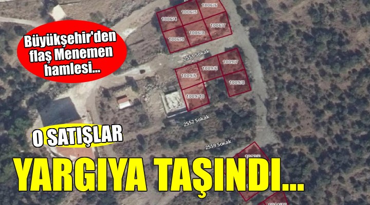 ?zmir Büyük?ehir Belediyesi Menemen Belediyesi’nin sat??a ç?kard??? ta??nmazlar kapsam?ndaki 86 parsel için yürütmeyi durdurma ve iptal talebiyle dava açt?. Davan?n gerekçesinde konut alan? olarak belirlenmemi? bölgelerde ya?anabilecek kentle?me sorunlar?na ve olu?abilecek çevresel sorunlara dikkat çekildi.