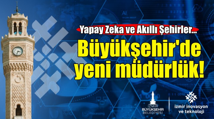 ?zmir Büyük?ehir Belediyesi i?tiraki ?zmir ?novasyon ve Teknoloji A.?. bünyesinde, Yapay Zeka ve Ak?ll? ?ehirler Müdürlü?ü kuruldu. Ba?kan Dr. Cemil Tugay'?n seçim vaatlerinden biri olan müdürlük, ?zmir’i yapay zekada öncü kent yapma hedefiyle inovasyon ve teknoloji odakl? projeleri hayata geçirecek.