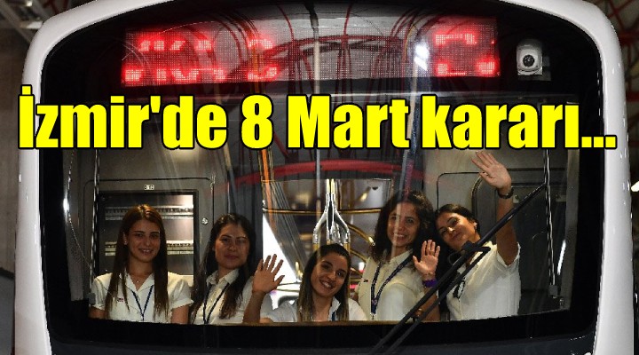 SONKALE- ?zmir Büyük?ehir Belediyesi'nin ?ubat ay? meclis toplant?s?n?n üçüncü oturumu Ba?kanvekili Mustafa Özuslu ba?kanl???nda yap?ld?. Oturumda, sel felaketi desteklerine Çe?me Alaçat?'da ya?anan hortumda zarar görenler de dahil edildi. 8 Mart Dünya Emekçi Kad?nlar Günü için de dikkat çeken bir karar al?nd?. Buna göre, ?zmir Büyük?ehir Belediyesi, 8 Mart günü toplu ta??m araçlar?nda yüzde 50 indirim uygulayacak. 8 Mart'ta otobüs, metro, tramvay, ?ZBAN ve vapuru yüzde 50 indirimli kullanacak olan yurtta?lar, mevcut aktarma sisteminde de ayn? ?ekilde faydalanabilecek.
