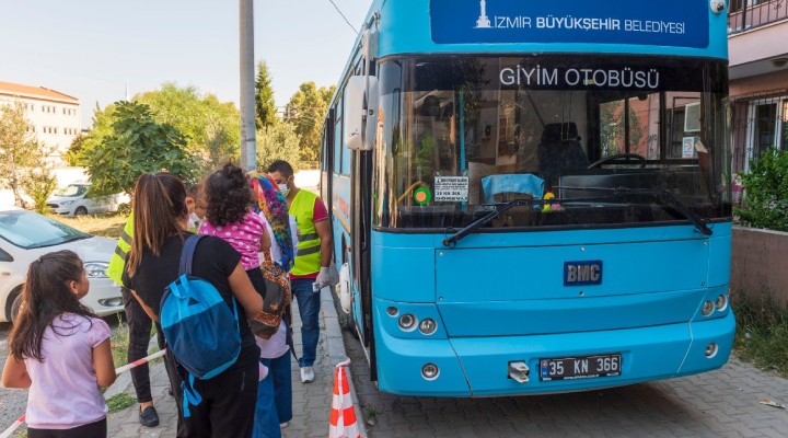 ?lk olarak Buca’n?n Göksu Mahallesi’ndeki yurtta?larla bulu?an mobil giysi otobüsü çocuklara erken bayram sevinci ya?att?. Koronavirüsle mücadele kapsam?nda aileler otobüse s?rayla al?n?rken, ate? ölçerle ate? kontrolü de yap?ld?. Gard?rop ?eklinde dizayn edilen otobüste çocuklar için k?yafet, ayakkab? ile oyuncak bulunurken spor formas?ndan tak?m elbiseye, ni?anl?ktan, kad?nlar için etek ve pantolona, kravattan, ?ala ve çoraba kadar geni? bir yelpazeye sahip yeni k?yafetler yer al?yor. Deneme kabinlerinin de bulundu?u otobüste yurtta?lar kendi bedenlerine ve zevklerine uygun k?yafetleri seçebiliyor.