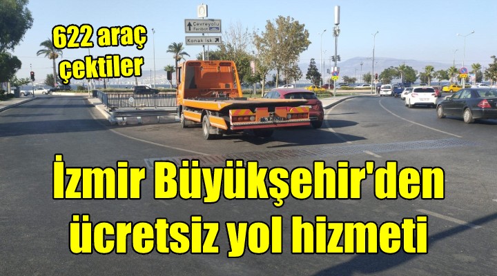 ?zmir Büyük?ehir Belediyesi, koronavirüs salg?n?yla birlikte artan özel araç kullan?m?ndan kaynaklanan motorlu ta??t trafi?ini, mümkün oldu?unca ak?c? hale getirme hedefiyle 9 Eylül 2020’de “ücretsiz yol yard?m hizmeti” uygulamas?n? hayata geçirdi. Motorlu ta??t trafi?inin en yo?un oldu?u Alt?nyol, Mustafa Kemal Sahil Bulvar? ve Ye?ildere Caddesi’nde, farkl? noktalarda be? adet çekici konumland?r?ld?. ?zmir Ula??m Merkezi (?ZUM) taraf?ndan yönlendirilen araçlar, Konak Pier - ?zmir Marina Kav?a??; Kar??yaka Naldöken Köprüsü - Meles ve Ye?ildere Atatürk Mask? - Zafer Payz?n Köprülü Kav?a?? aras?nda ücretsiz hizmet veriyor.