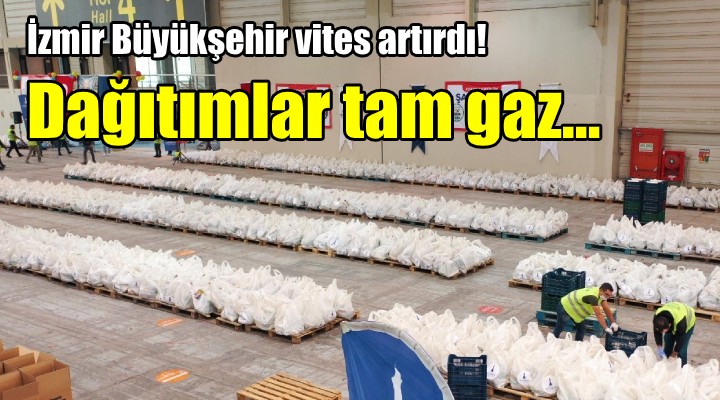 Bir k?sm? kampanya kapsam?nda ?zmirlilerin deste?iyle al?nan g?dalar, kampanyan?n lojistik merkezi olarak Kültürpark’taki 20 bin metrekarelik hollere getiriliyor. Paketlenecek ürünler burada “?zmir halk?n?n hediyesidir” yaz?l? g?da paketlerine yerle?tiriliyor. Haz?rlanan g?da paketleri sabah saatlerinde bu hollerden al?narak araçlara yükleniyor. Bu paketler ?zmir Büyük?ehir Belediyesi’nin ekipleri ve gönüllüleri taraf?ndan Büyük?ehir Belediyesi taraf?ndan deste?in uygun görüldü?ü adreslere da??t?l?yor. Gönüllüler de paketleme ve da??t?m i?lerinde Büyük?ehir Belediyesi’nin personeline destek veriyor. Ekipler günlük ortalama 3 bin paketi adreslerine ula?t?r?yor.