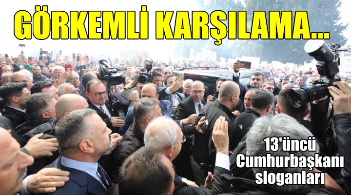 K?l?çdaro?lu, havaliman?nda gözükünce binlerce ki?iden olu?an kalabal?k "Halk?n Umudu K?l?çdaro?lu" ve "13'üncü Cumhurba?kan?" sloganlar? att?. K?l?çdaro?lu da kendisini kar??lamaya gelen partililer ve yurtta?lar? arac?na binmeden önce selamlad?.