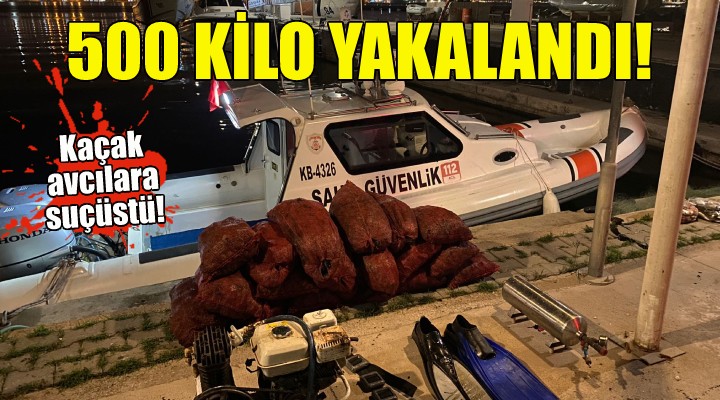 Ekipler 4 Haziran tarihinde körfezde kaçak avlanan 2 ki?i tespit etti. Bölgeye yönlendirilen Sahil Güvenlik teknesi kaçak avlanan 2 ki?iyi gözalt?na ald?. Yap?lan çal??malarda 20 çuval içerisinde 500 kilogram midye ele geçirildi.