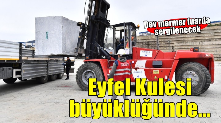 Fuarda sergilenecek bloklar?n her birinin a??rl??? 20 tonu a?abiliyor. Bini a?k?n blo?un getirilece?i fuar alan?nda sergilenecek mermerlerin toplam a??rl??? ise yakla??k 10 bin ton oldu?u bilinen Eyfel Kulesi’nin iki kat?na ula?arak 20 bin tonu bulacak.