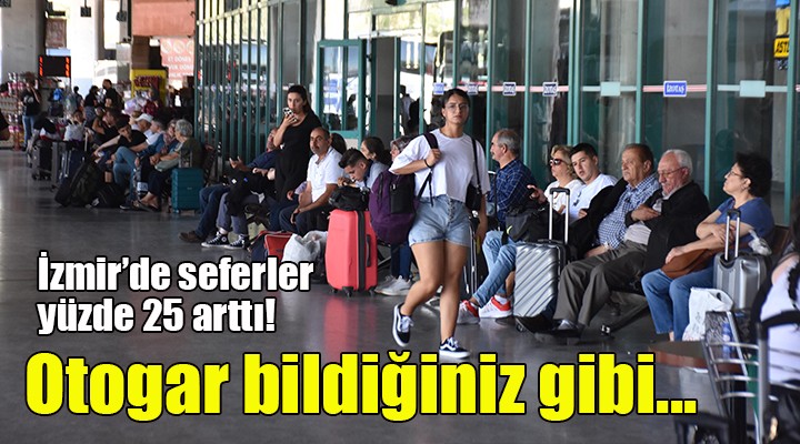 Kentte, 9 günlük Kurban Bayram? tatilini farkl? ?ehirlerde geçirmek isteyenler, okullar?n kapanmas?yla ?zmir Otogar?'nda yo?unluk olu?turdu. Baz? ki?iler, kurban kesmek için ailelerinin yan?na giderken, baz?lar? da tatil bölgelerine do?ru yola ç?kt?. Günlük ortalama 800 otobüsün sefer yapt??? ?zmir Otogar?'nda bu say?, Kurban Bayram? öncesinde yüzde 25 art?p, 1000'e ç?kt?. ?lave seferlerin yap?ld??? otogarda, güvenlik ve temizlik tedbirleri al?nd?.