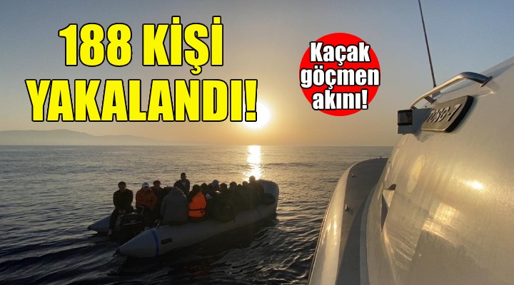 Ekipler, Çe?me ilçesi aç?klar?nda, ?talya rotas? üzerinde tespit edilen hareketli yattaki 112 kaçak göçmen ile 5 göçmen kaçakç?s?n? da yakalad?.