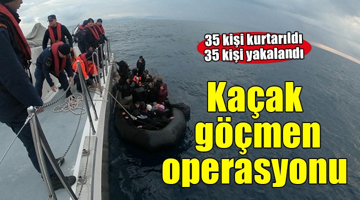 Sahil Güvenlik ekipleri taraf?ndan bottaki 16's? çocuk 35 düzensiz göçmen yakaland?.