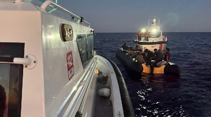 Sahil Güvenlik ekipleri taraf?ndan durdurulan hareketli lastik bottaki 1'i çocuk 41 düzensiz göçmen yakaland?.
