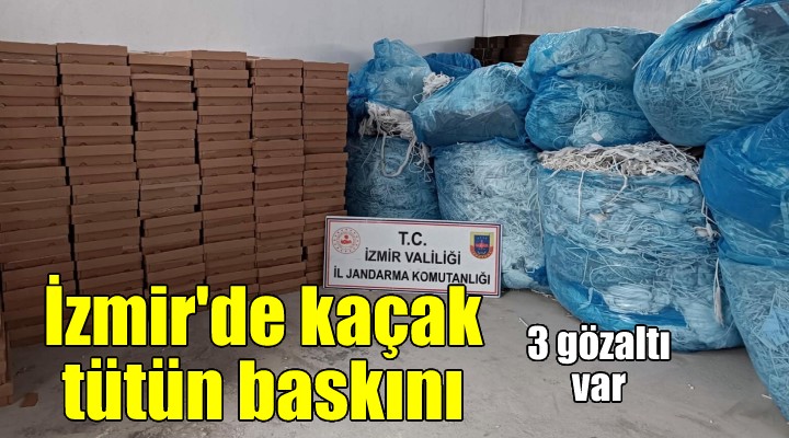 ?l Jandarma Komutanl??? Kaçakç?l?k ve Organize Suçlarla Mücadele ?ube Müdürlü?ü ve Torbal? ?lçe Jandarma Komutanl??? ekipleri, ilçeye ba?l? Sahipler Mahallesi'ndeki H.U., S.Y., ve K.B.'ye ait bir depoda kaçak tütün bulundu?u bilgisi üzerine harekete geçti. Teknik ve fiziki takibin ard?ndan depoya düzenlenen operasyonda, 1,5 ton kaçak tütün ve 2 milyon 200 bin sigara filtresi ele geçirildi. Operasyonda 3 ?üpheli de gözalt?na al?nd?.