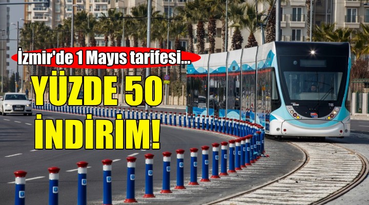 ?zmir Büyük?ehir Belediyesi’ne ba?l? toplu ula??m kurum ve kurulu?lar?, resmi tatil olarak kutlanan 1 May?s Emek ve Dayan??ma Günü’nde yüzde 50 indirimli hizmet verecek.