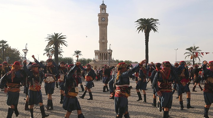 ?l Milli E?itim Müdürlü?ünden yap?lan aç?klamaya göre, Konak Meydan?'nda gerçekle?tirilen gösteride Karaba?lar, Gaziemir, Konak, Balçova, Bornova, Buca, Kar??yaka, Menemen ve Bayrakl? halk e?itim merkezlerinden kursiyerler yer ald?.