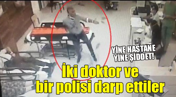?zmir'in Bornova ilçesindeki Ege Üniversitesi Hastanesi acil servisine, trafik kazas? ?ikayetiyle gelen Ersin B. ve arkada?? ?brahim Halil Ç.'nin, doktorlara sald?rd??? ve hastane polisi M.K. taraf?ndan engellendi?i anlar?n görüntüsü ortaya ç?kt?. Hastanenin güvenlik kameras?na yans?yan görüntülerde, medikal boyunlukla sedyede yatan Ersin B.'nin bir anda ba??rarak sedyeden kalk?p, doktorlara sald?rd??? ve hastane polisi M.K.'nin de ona engel olmaya çal??t??? görülüyor.