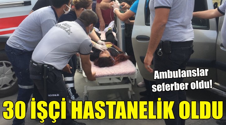 Olay, Tire Organize Sanayi Bölgesi’nde faaliyet gösteren bir tekstil fabrikas?nda meydana geldi. Fabrikada çal??an yakla??k 30 i?çi, iddiaya göre mide bulant?s? ve kusma ?ikayetiyle 112’yi arad?lar. Derhal harekete geçen ambulanslar, fabrikadan ald?klar? i?çileri Tire Devlet Hastanesi Acil Servisi’ne sevk etmeye ba?lad?lar.