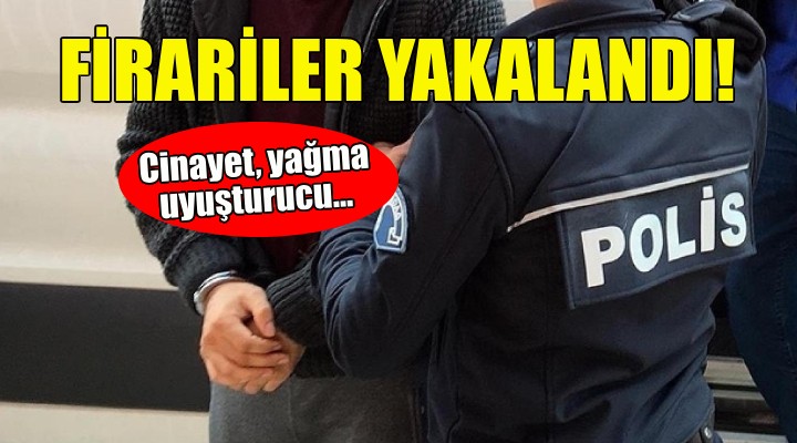 Yakalananlardan A.L.'nin silahla ya?ma suçundan 57 y?l, M.Ö.'nün kasten öldürme suçundan 35 y?l, C.G.'nin kasten yaralama suçundan 15 y?l 5 ay ve Ç.B.'nin uyu?turucu satmak suçundan 15 y?l 7 ay hakk?nda kesinle?mi? hapis cezas? bulundu?u bildirildi.