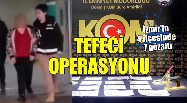 ?zmir Cumhuriyet Ba?savc?l??? koordinesinde ?l Emniyet Müdürlü?ü Mali Suçlarla Mücadele ?ube Müdürlü?ü ile Alia?a ve Ödemi? Mali Suçlar Büro Amirli?i ekipleri taraf?ndan, tefecilik yapan ki?ilere yönelik çal??ma yap?ld?. ?zmir'in Kar??yaka, Buca, Alia?a ve Ödemi? ilçelerinde ekonomik durumu kötü olan, acil nakit para aray??? içerisindeki vatanda?lar? yüksek faizlerle borçland?rarak senet imzalatan, borcunu ödeyemeyenleri tehdit ettikleri tespit edilen ?üphelilere yönelik 15 ve 16 Ocak'ta e? zamanl? operasyonlar düzenlendi.