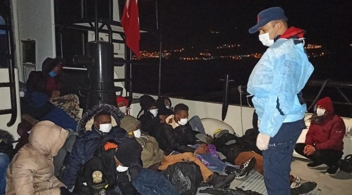 Sahil Güvenlik Komutanl???, 13 Mart saat 02.15 s?ralar?nda Karaburun ilçesi aç?klar?nda bir grup kaçak göçmenin yasa d??? yollarla yurt d???na ç?kmaya çal??t??? bilgisini ald?. ?hbar üzerine bölgeye hareket eden ekipler, lastik bot içerisindeki 24 kaçak göçmeni yakalad?.