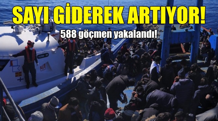 588 düzensiz göçmen, i?lemlerin ard?ndan ?l Göç ?daresi Müdürlü?üne teslim edildi. Gözalt?na al?nan 5 ?üpheli hakk?ndaki yasal i?lemlerin sürdü?ü ö?renildi.