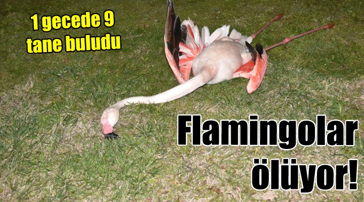 Bayrakl? Meles Deltas? civar?nda ak?am saatlerinde 9 flamingo, vatanda?lar taraf?ndan ölü bulundu. ?hbar üzerine bölgeye, belediye ekipleri sevk edildi. Çi?li ilçesinde bulunan Ku? Cenneti bölgesinde yo?un olarak ya?ayan flamingolar?n ölümüne ili?kin, Çi?li Belediyesi Veteriner ??leri Müdürlü?ü ve ?zmir Büyük?ehir Belediyesi ekipleri bölgede inceleme yapt?. ?ncelemenin ard?ndan flamingolar, ekiplerce ?zmir Büyük?ehir Belediyesi Veteriner ??leri Müdürlü?ü’ne götürüldü.