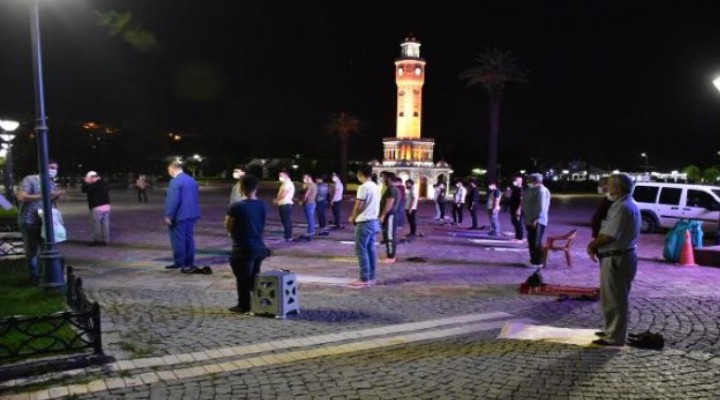 Cumhurba?kan? Recep Tayyip Erdo?an'?n, Ayasofya'n?n ibadete aç?laca??n? duyurmas?, ?zmir'de de sevinçle kar??land?. ?zmir'in 30 ilçesinde sabah namaz? öncesi Ayasofya'n?n ibadete aç?lmas? nedeniyle ?ükür namaz? k?l?nd?. AK Parti Gençlik Kollar?'n?n öncülü?ünde vatanda?lar, Konak Meydan?'nda koronavirüs tedbirlerine uyarak ?ükür namaz? k?ld?.