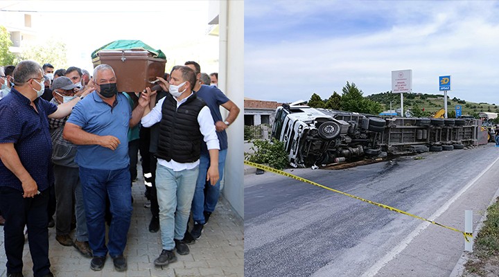 TIR'?n kald?r?mdaki iki ki?inin üzerine devrildi?i anlar?n bir marketin güvenlik kameralar? taraf?ndan görüntülendi?i ortaya ç?kt?. Devrilen TIR'?n alt?nda can veren ve bekar oldu?u ö?renilen Özgür Aydemir'in cenazesi sabah, Bergama Necla- Mithat Öztüre Devlet Hastanesi Morgu'ndan, evli 2 çocuk babas? Erol Y?lmaz'?n cenazesi ise ö?len ?zmir Adli T?p Kurumu morgundan yak?nlar? taraf?ndan teslim al?nd?. ?ki arkada?tan Aydemir'in cenazesi, ilk olarak Fatih Mahallesi'ndeki evine getirildi. Cenaze evin önüne geldi?inde gözya?lar? sel oldu. Burada yak?nlar?ndan helallik al?nmas?n?n ard?ndan Y?lmaz'?n Bergama Mezarl?kba?? Camii'ne getirilen cenazesi, ö?len k?l?nan namaz sonras? Bergama ?lçe Mezarl???'nda topra?a verildi.