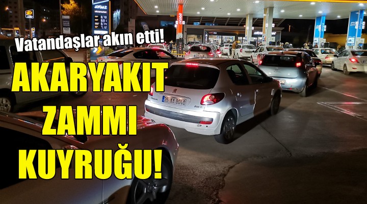 Benzin, motorin ve LPG'ye  zam haberi sonras? ?zmir'de akaryak?t istasyonlar?nda uzun kuyruklar olu?tu.