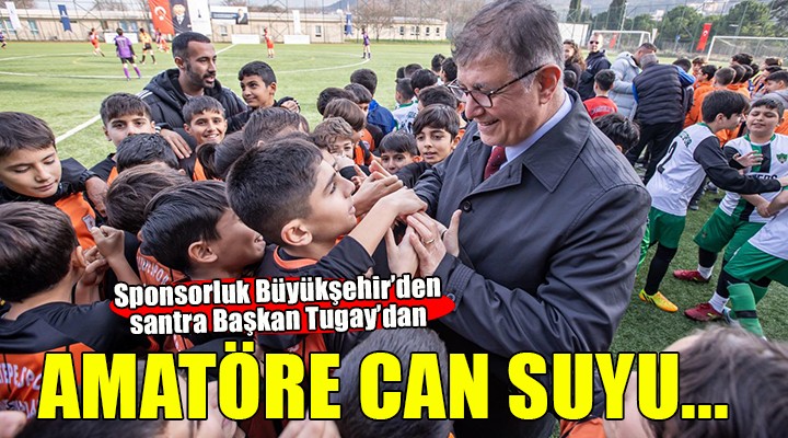 ?zmir Büyük?ehir Belediyesi’nin “spor kenti ?zmir” hedefi için yürüttü?ü çal??malara bir yenisi daha eklendi. ?zmir Büyük?ehir Belediyesi, U-11 ve U-12 erkek, U-13 ve U-15 k?z futbol tak?mlar?n?n mücadele etti?i liglere isim sponsoru oldu. Amatör spor kulüplerine fazladan malzeme deste?i de verilecek. Projenin tan?t?m toplant?s?, ?zmir Büyük?ehir Belediye Ba?kan? Dr. Cemil Tugay’?n ev sahipli?inde Bornova’da yer alan Dr. Behçet Uz Rekreasyon Alan?’nda yap?ld?. Programda konu?an Ba?kan Dr. Cemil Tugay, liglerin ba?lang?c? için düzenlenen gösteri maç?n? izledi. Ard?ndan te?ekkür plaketi takdim edilen Ba?kan Tugay, sembolik santra vuru?unu da yapt?.
