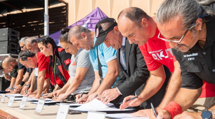 ?lk protokol 29 Eylül 2021 günü üç ilçe belediye arama kurtarma ekibi ve arama kurtarma konusunda faaliyet gösteren 9 sivil toplum kurulu?u ile imzaland?. ?? birli?i protokolüne Ödemi? Arama Kurtarma Derne?i, Anda Arama Kurtarma Derne?i, Kamp Ate?i Türkiye Arama Kurtarma Derne?i, Kuzey Ege Arama Kurtarma Derne?i, Bornova Arama Kurtarma Derne?i, ?zmir Afet Bilinci ve ?klim Fark?ndal??? Derne?i, Bursa Arama Kurtarma ?zmir ?ubesi, Toplum ve Afet Ekipleri Haberle?me Arama Kurtarma Derne?i, Hayvan Arama Kurtarma Derne?i, Menderes Da?c?l?k ve Arama Kurtarma Derne?i, Rota Arama Kurtarma Derne?i, Ege Acil Arama Kurtarma Derne?i, Baran Tursun Vakf?, Bergama Do?al Afet Arama Kurtarma Derne?i, M1G Arama Kurtarma Derne?i, Hürdo?a Da?c?l?k Spor Kulübü ve AKUT Vakf? eklendi. ?? birli?i sa?lanan kurum say?s? 29’a yükselmi? oldu.