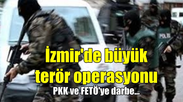 Di?er yandan, ?l Emniyet Müdürlü?ü Terörle Mücadele ?ubesi ekipleri, ?zmir Cumhuriyet Ba?savc?l???n?n yürüttü?ü soru?turma kapsam?nda PKK/KCK ad?na faaliyet gösterdikleri ve örgütün sosyal medyada propagandas?n? yapt?klar? gerekçesiyle biri Suriye uyruklu 5 ki?iyi yakalamak için çal??ma ba?latt?. Kent merkezi ve ilçelerinde e? zamanl? düzenlenen operasyonda 5 ?üpheli gözalt?na al?nd?. Zanl?lar sorgulanmak üzere emniyete götürüldü.