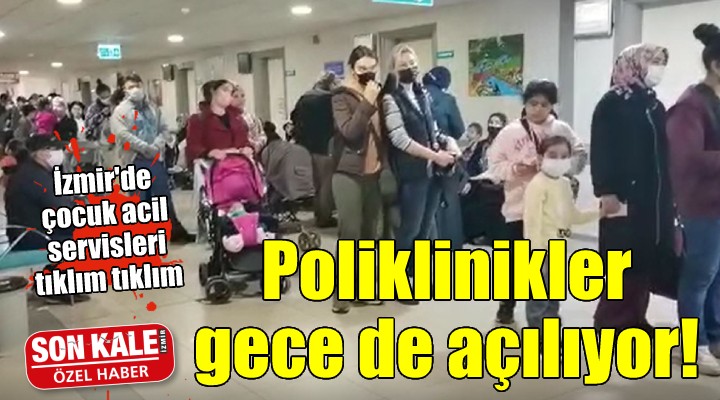 SONKALE?ZM?R- ?zmir'de üst solunum yolu hastal?klar? nedeniyle çocuk acil servislerinde uzun kuyruklar olu?urken, ?zmir Tabip Odas? Ba?kan? Süleyman Kaynak hastanalerde yükün hafiletilmesi için gece saatlerinde poliklinik servislerinin de aç?ld???n? söyledi.