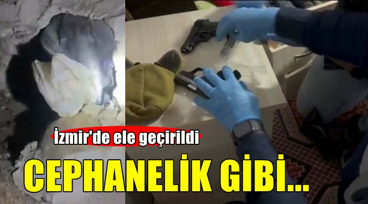 Bornova Suç Önleme ve Soru?turma Büro Amirli?i ekiplerince ?üphelinin Kemalpa?a'daki adresinde yap?lan aramalarda ise 3 ruhsats?z tabanca, 1 ruhsats?z av tüfe?i, 335 dolu tüfek kartu?u, toplam 151 dolu fi?ek ele geçirildi. Evin depo bölümünde duvara yap?lan betondan eklentide ise 2 AK-47 ?arjörü ve 260 AK-47 fi?e?i ile ?üphelinin otomobilinde yap?lan aramada ruhsats?z tabanca, 2 yedek ?arjör, 37 dolu fi?ek ele geçirildi.