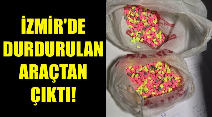 ?zmir ?l Emniyet Müdürlü?ü Narkotik Suçlarla Mücadele ?ube Müdürlü?ü ekipleri, Konak'ta yürütülen Narko-Alan Projesi kapsam?nda al?nan istihbaratta, hafif ticari bir araçta uyu?turucu hap bulundu?u bilgisi üzerine harekete geçti.