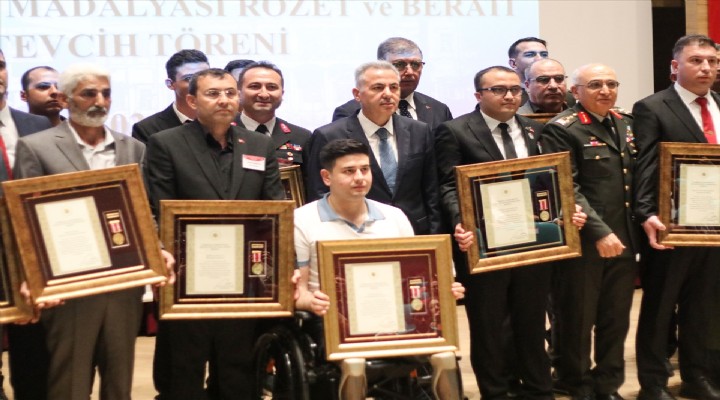 ?ehit ve gazilerin öz geçmi?inin okunmas?n?n ard?ndan 12 ?ehit yak?n? ile 13 gaziye madalya ve berat takdim edildi.