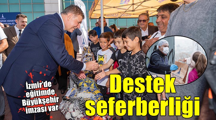 ?zmir Büyük?ehir Belediyesi, ilkö?retimden üniversiteye kadar her kademede ö?rencilere destek oluyor. Sosyal incelemesi yap?lm?? ve ihtiyaç sahibi oldu?u tespit edilmi? ilkokul ve ortaokul ö?rencilerine k?rtasiye malzemesi deste?i de veren ?zmir Büyük?ehir Belediyesi, yard?m miktar?n? da art?r?yor. 2023’te 500 TL olarak ?zmir ?ehir Kart’?na yat?r?lan k?rtasiye deste?i, 2024 y?l?nda Dr. Cemil Tugay’?n talimat?yla her bir ö?renci için 2 bin 500 TL’ye yükseltildi ve toplamda 13 bin 632 ö?renciye 34 milyon liray? a?an k?rtasiye deste?i ula?t?r?ld?. Aileler anla?mal? k?rtasiyelerde al??veri? yapt??? için proje k?rtasiye esnaf?na da can suyu oldu.