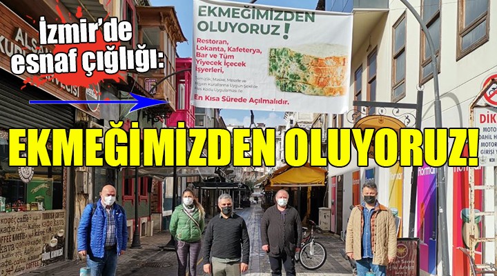 SONKALE?ZM?R- ?zmir'de e?lence sektörünün merkezlerinden Alsancak K?br?s ?ehitleri Caddesi'ndeki i?letmeciler isyanda. "Ekme?imizden oluyoruz" yaz?l? dev bir afi? haz?rlatt?r?p sokak giri?ine asan esnaflar, restoran, lokanta, kafeterya, bar ve yiyecek içecek i?yerlerinin aç?lmas? için hükümete seslendi. Esnaf Hami Torcu, "Her yer aç?k, sadece bizde mi problem var. Bittik" derken, bir di?er esnaf Handan Karuf, "Elektri?im, suyum kesildi. Kiray? ödeyemiyorum. Bize tarih versinler. Bu böyle gidecekse ba?ka bir ?eyler yapal?m. ?ntihar m? edece?iz, memleket mi de?i?tirece?iz, bakal?m" diye konu?tu.