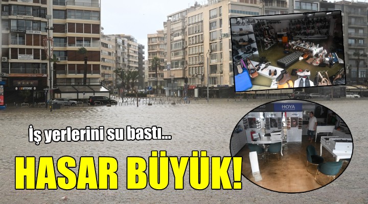 Alsancak semtinde yo?un ya????n ard?ndan denizin ta?mas? sonucu yollar su alt?nda kald?, çok say?da i? yeri, apartman ve dükkan? su bast?.
