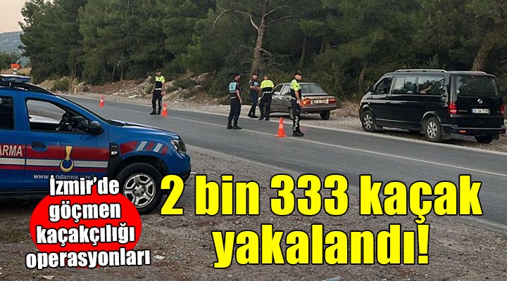 SONKALE?ZM?R-?zmir ?l Jandarma Komutanl??? ekipleri, Sahil Güvenlik Ege Deniz Bölge Komutanl??? ekipleri ile Eylül ay? içerisinde düzenlenen operasyonlarda ülkeyi kaçak yollarla terk etmek isteyen 2 bin 333 düzensiz göçmeni yakalad?.